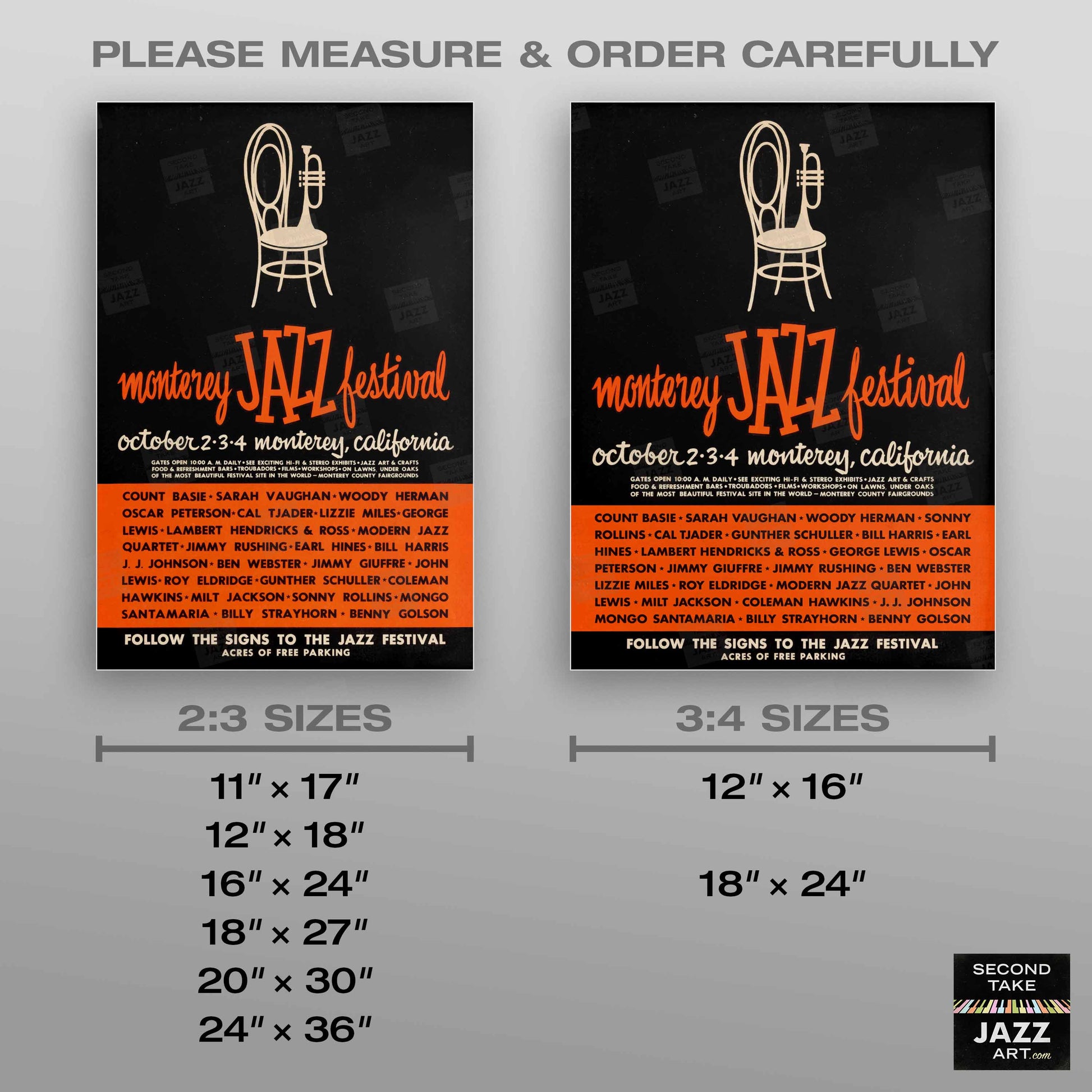 Our mission at SecondTakeJazzArt is to produce high-quality visuals that commemorate celebrated live performances by jazz legends from the distant past. We particularly focus on renowned club or concert appearances that have been preserved by fan-favorite recordings — legendary shows for which little to no advertising ephemera survives (or was ever created).