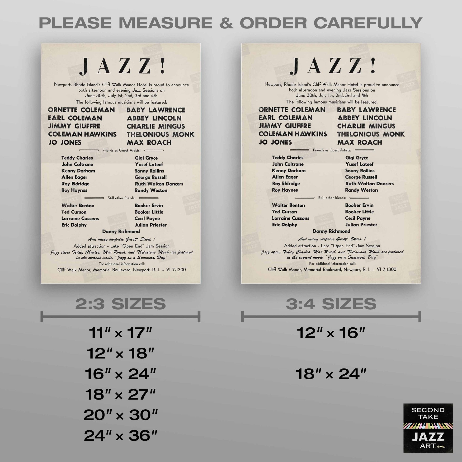 a high-quality unframed poster featuring original upgraded artwork commemorating some of the most celebrated live performances in jazz history: