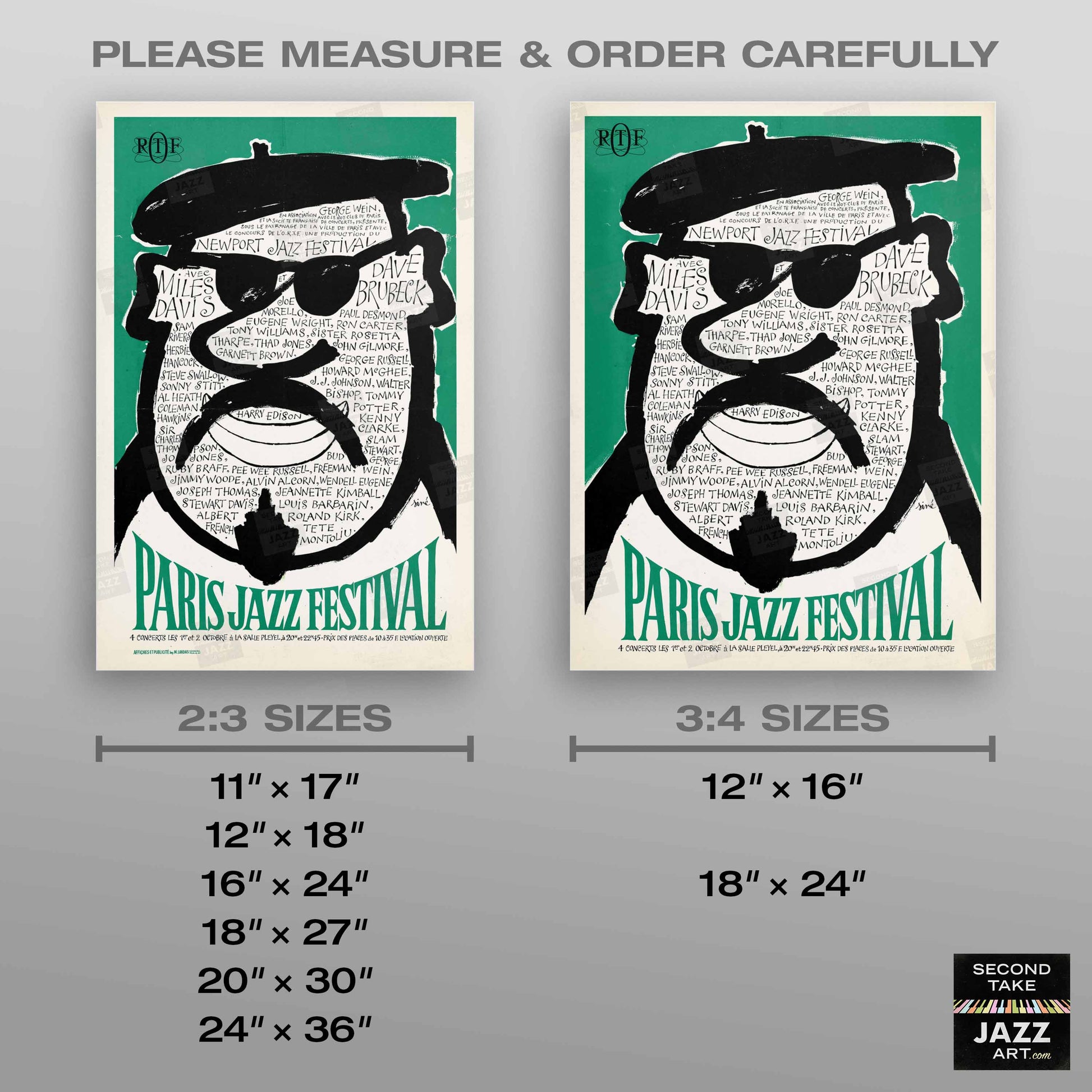 Our mission at SecondTakeJazzArt is to produce high-quality visuals that commemorate celebrated live performances by jazz legends from the distant past. We particularly focus on renowned club or concert appearances that have been preserved by fan-favorite recordings — legendary shows for which little to no advertising ephemera survives (or was ever created).