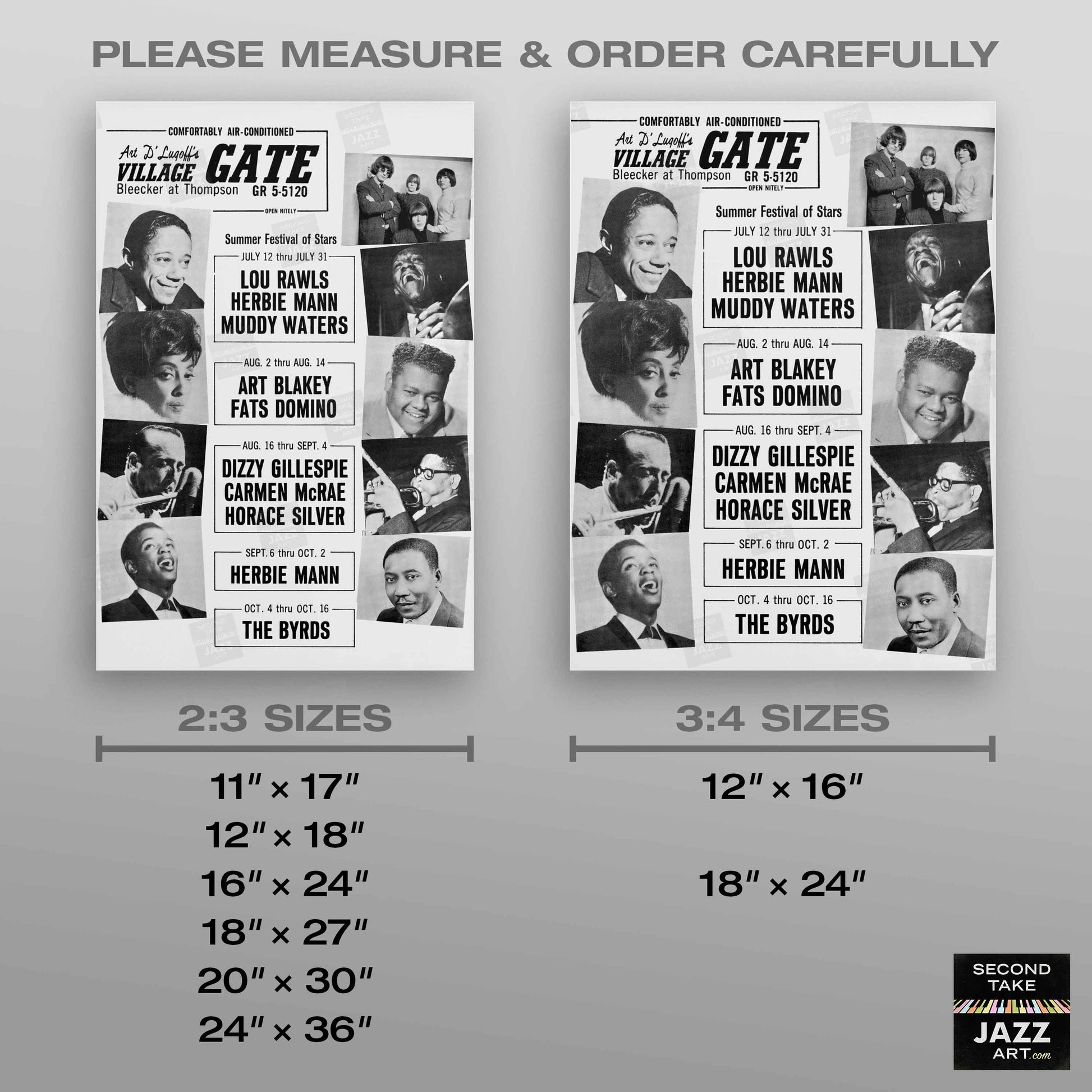 Our mission at SecondTakeJazzArt is to produce high-quality visuals that commemorate celebrated live performances by jazz legends from the distant past. We particularly focus on renowned club or concert appearances that have been preserved by fan-favorite recordings — legendary shows for which little to no advertising ephemera survives (or was ever created).