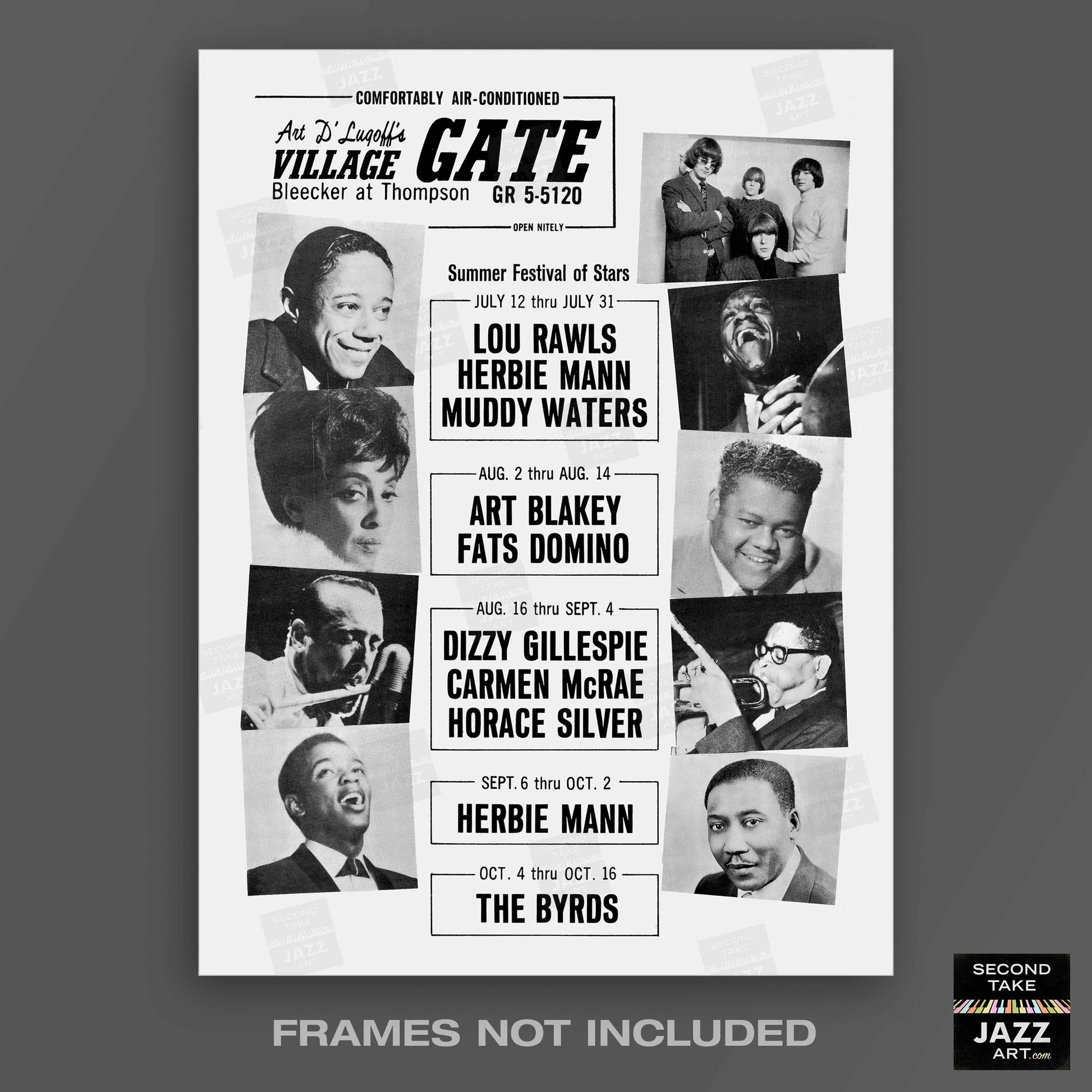 Art Blakey - Dizzy Gillespie - Herbie Mann jazz poster - Summer Jazz at the Village Gate - 1966