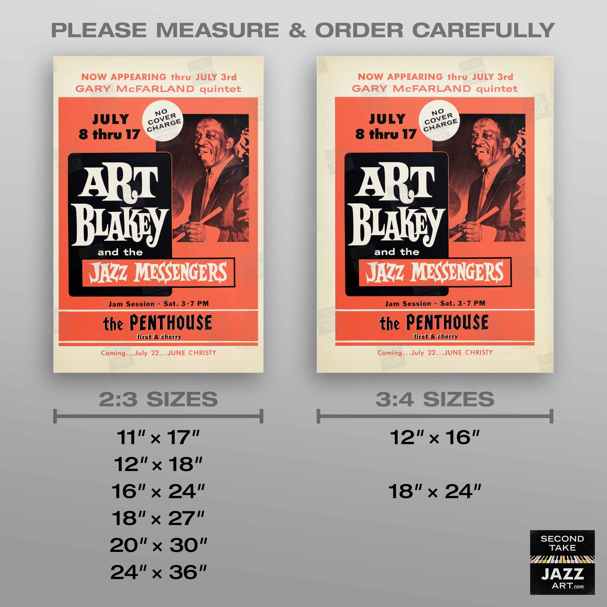 Our mission at SecondTakeJazzArt is to produce high-quality visuals that commemorate celebrated live performances by jazz legends from the distant past. We particularly focus on renowned club or concert appearances that have been preserved by fan-favorite recordings — legendary shows for which little to no advertising ephemera survives (or was ever created).
