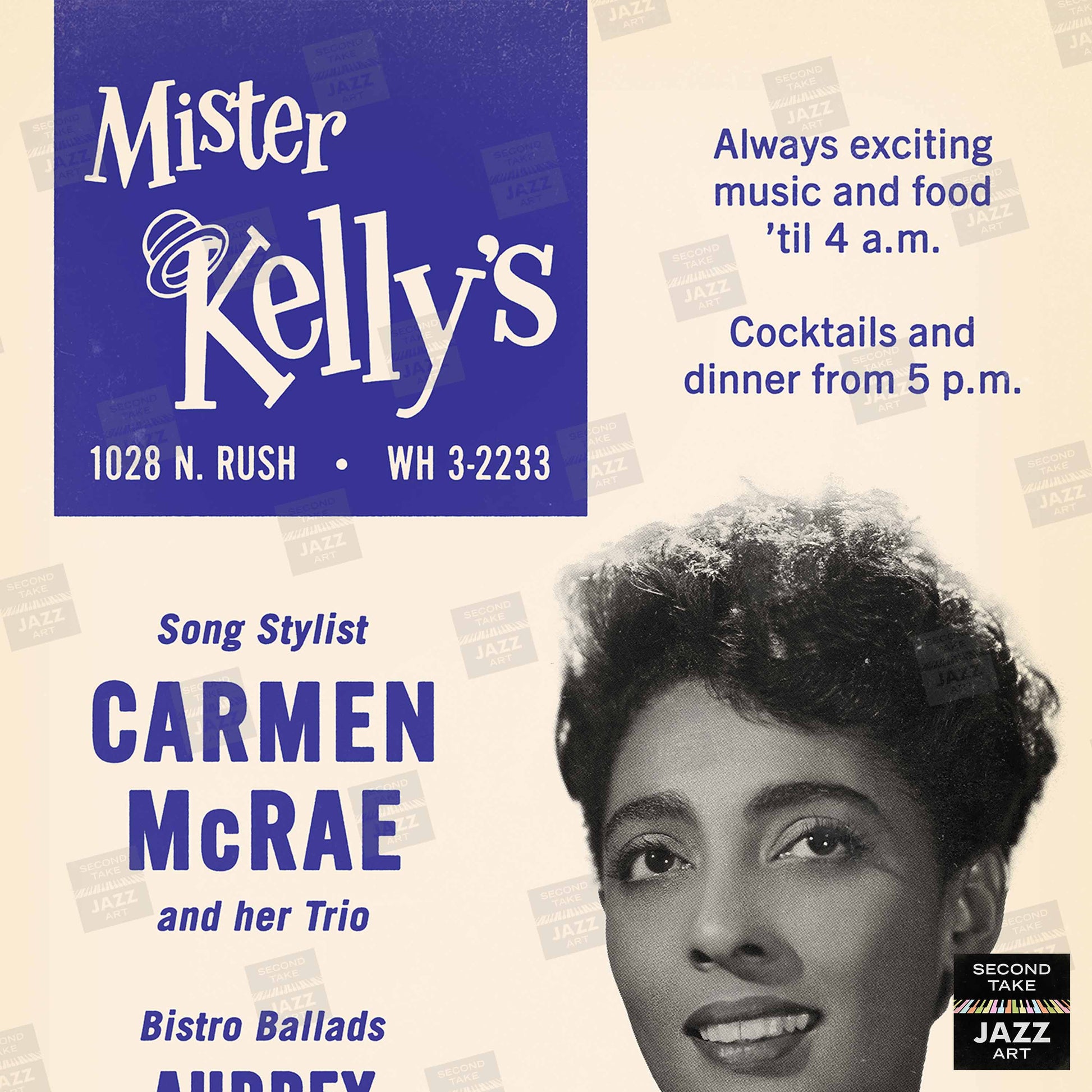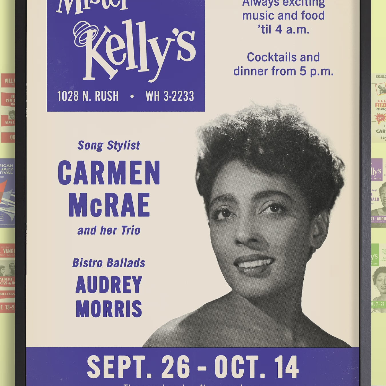 Carmen McRae jazz poster - Mister Kelly's - Chicago - 1956