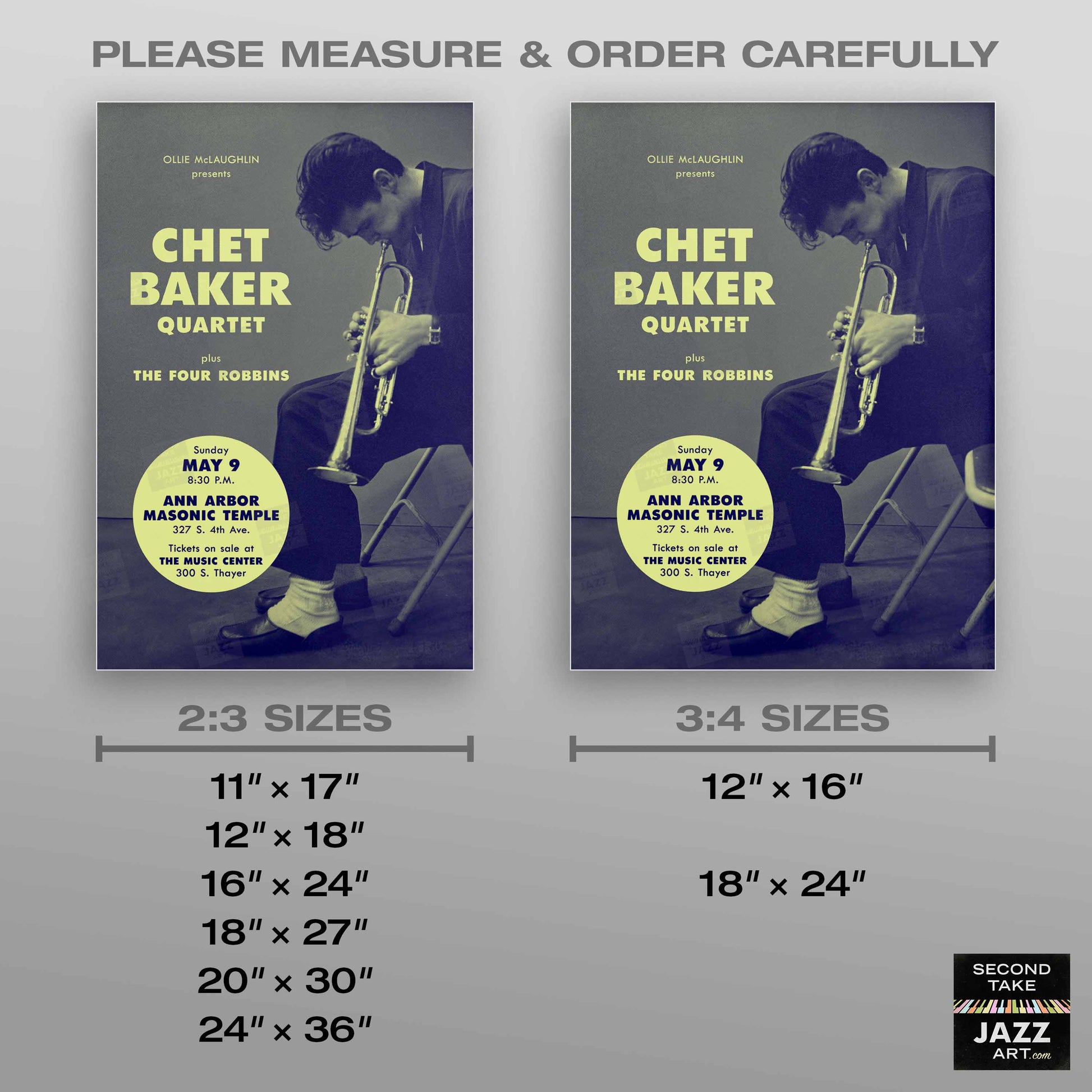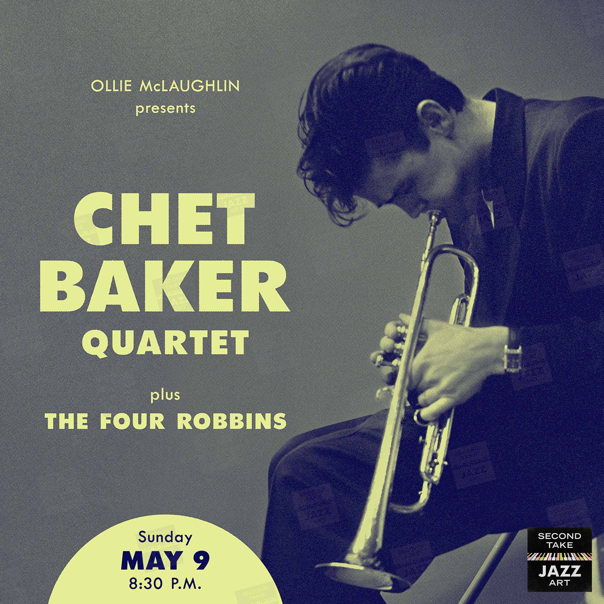 Our mission at SecondTakeJazzArt is to produce high-quality visuals that commemorate celebrated live performances by jazz legends from the distant past. We particularly focus on renowned club or concert appearances that have been preserved by fan-favorite recordings — legendary shows for which little to no advertising ephemera survives (or was ever created).