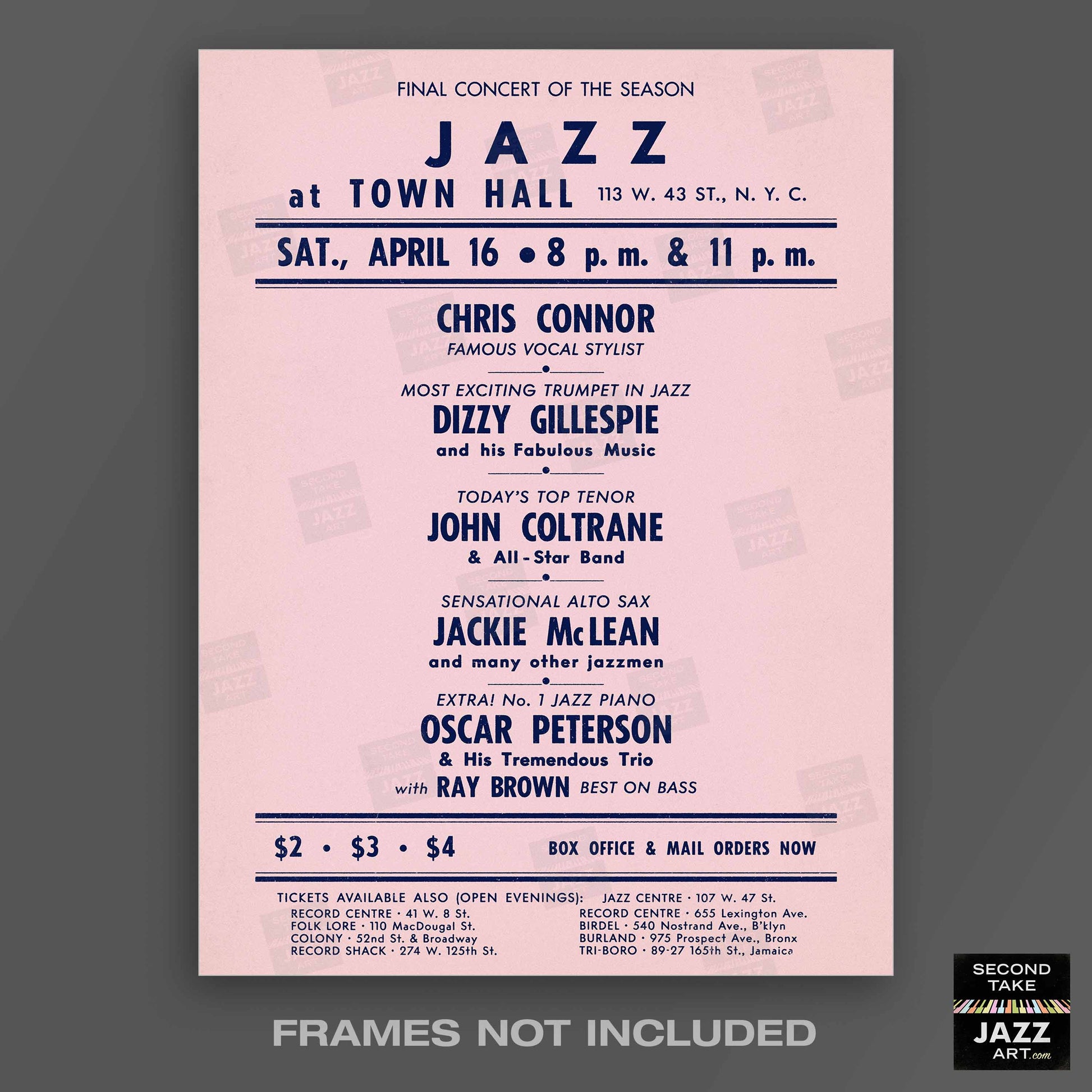 Chris Connor - Dizzy Gillespie - John Coltrane jazz poster - Town Hall - 1960