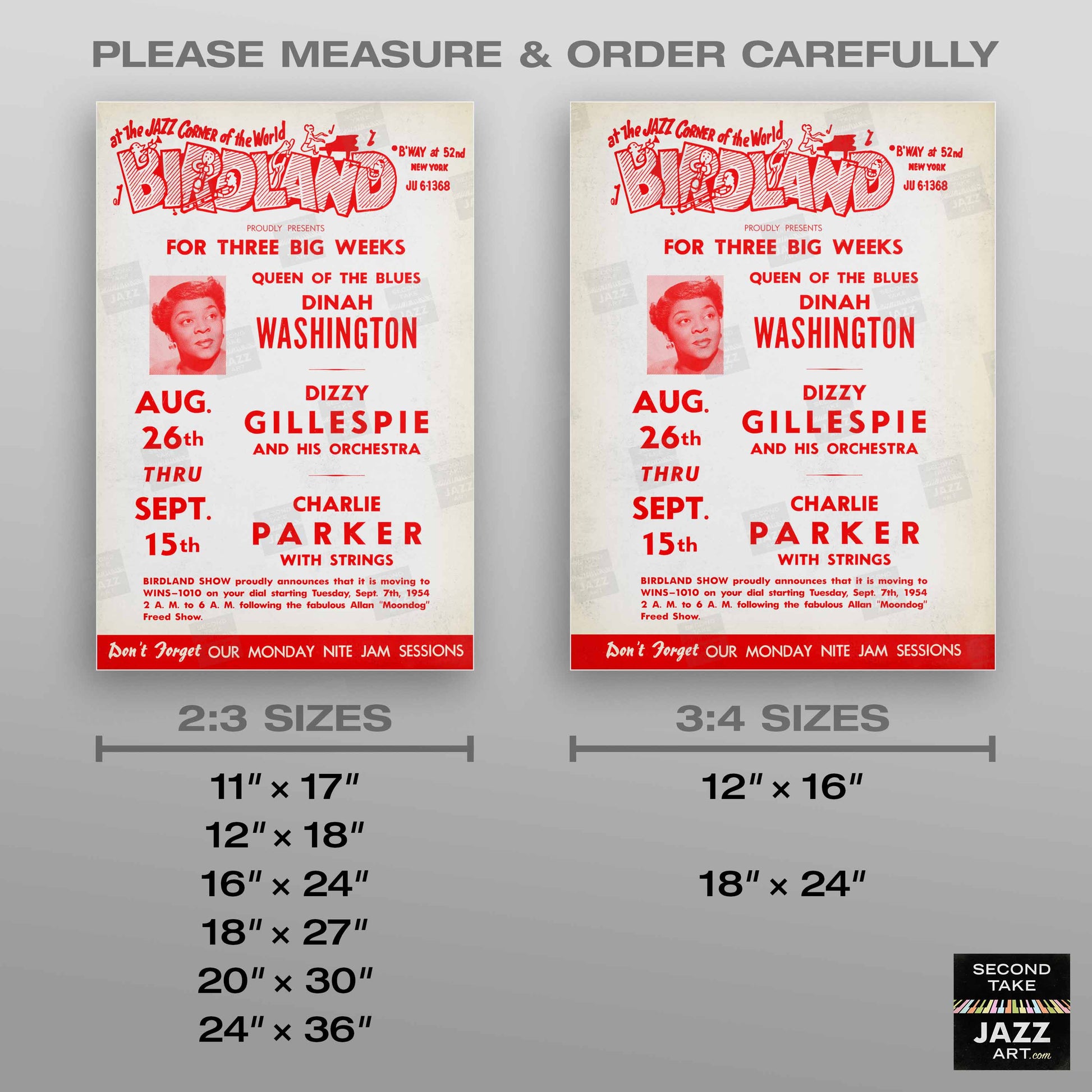 Dinah Washington - Dizzy Gillespie - Charlie Parker jazz poster - Birdland - 1954
