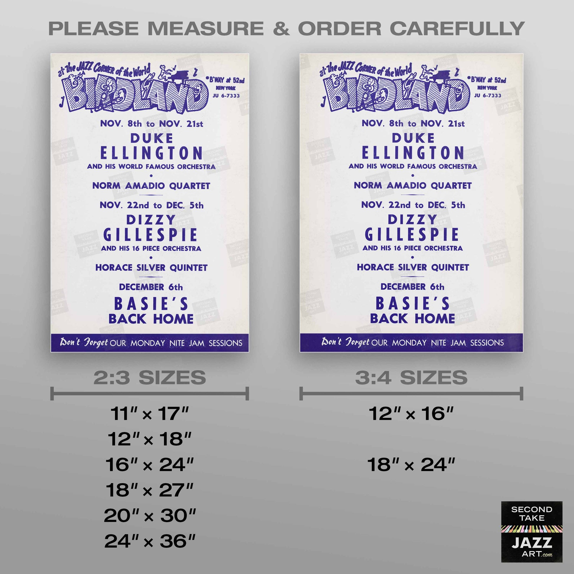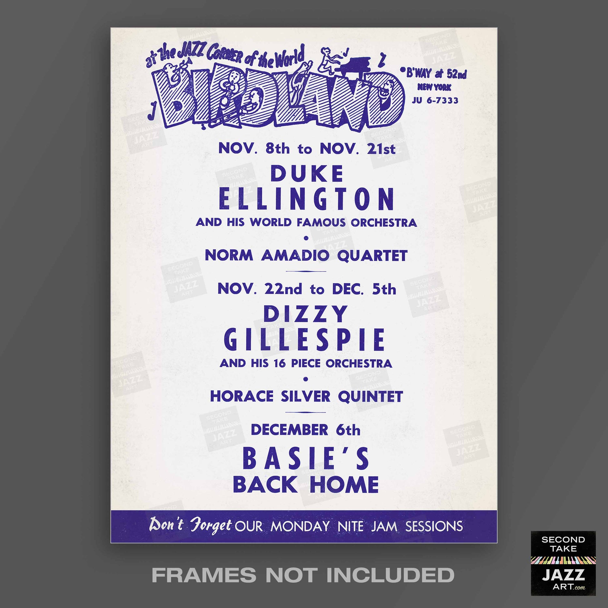 Duke Ellington - Dizzy Gillespie - Count Basie jazz poster - Birdland - 1956