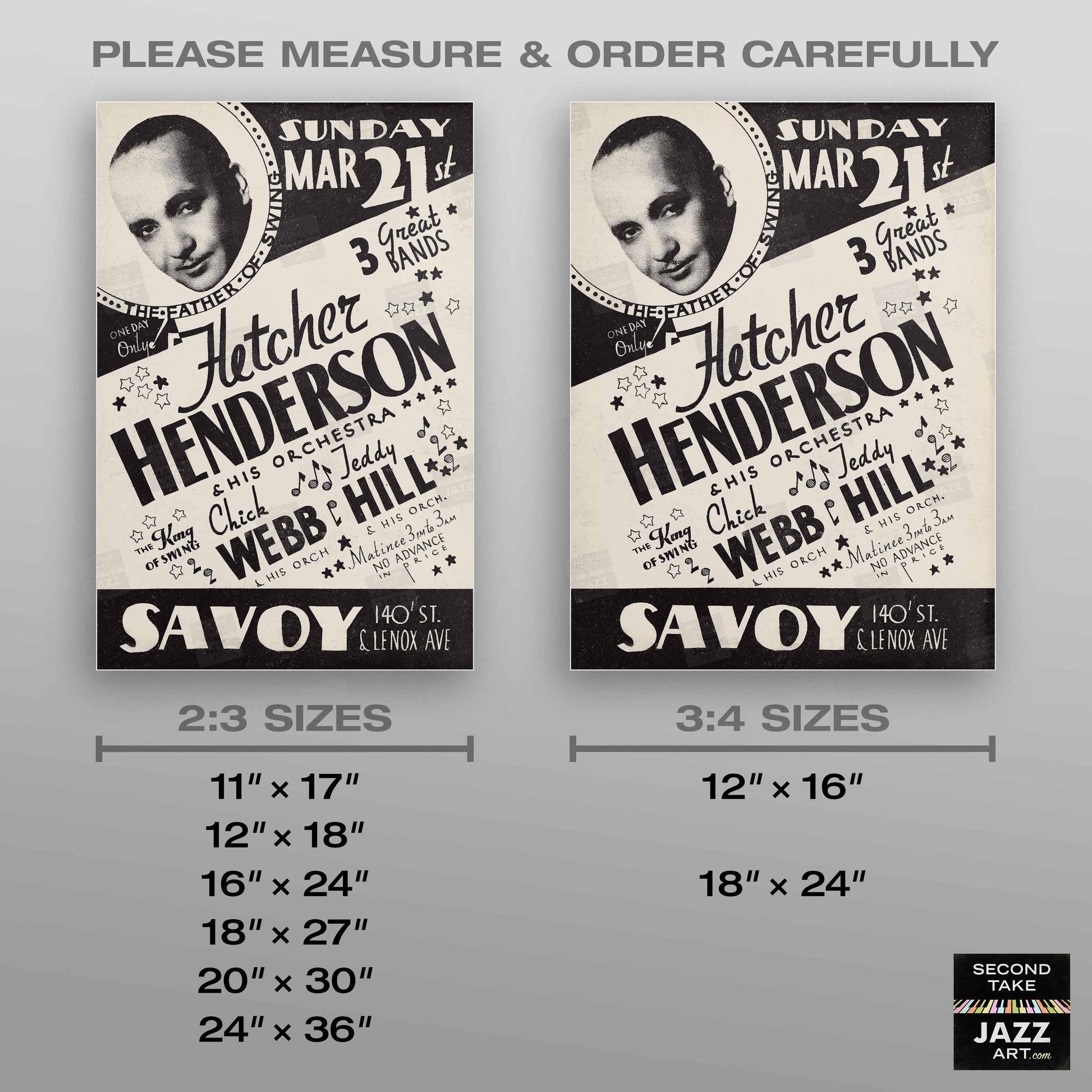 Fletcher Henderson - Chick Webb - Teddy Hill jazz poster - Savoy Ballroom - Harlem, New York - 1937