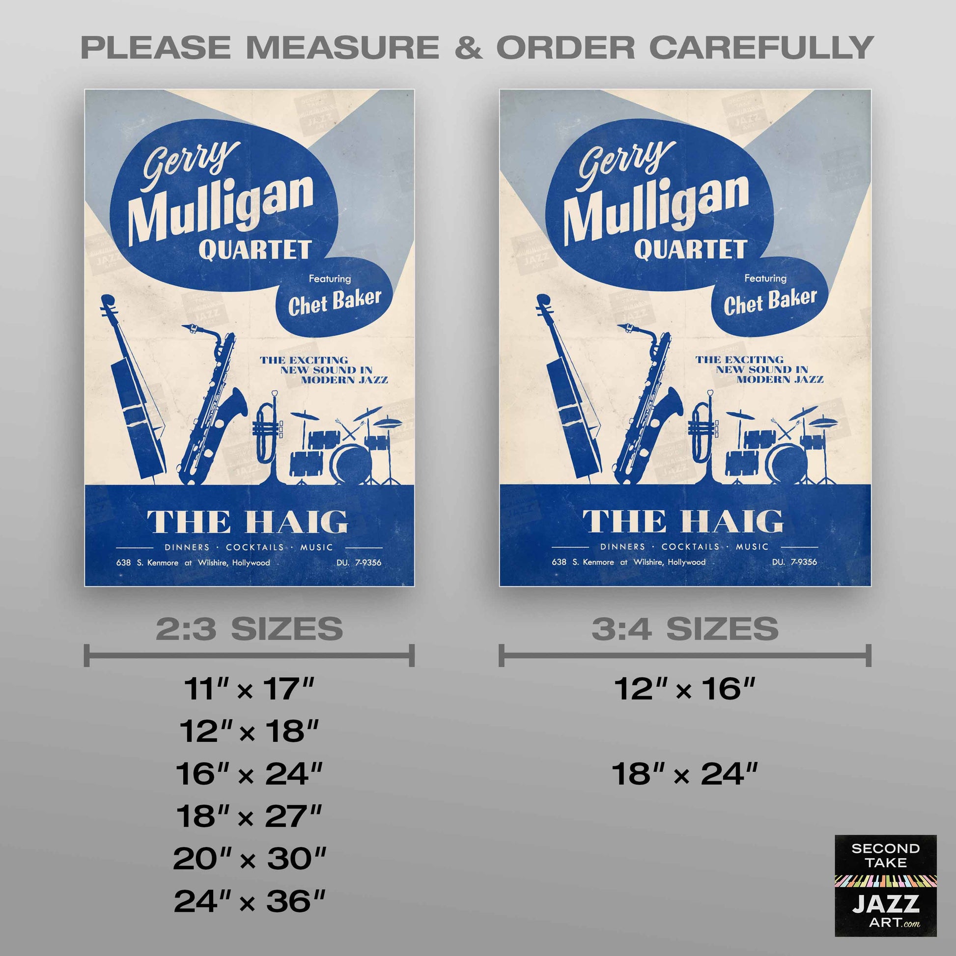 Gerry Mulligan - Chet Baker jazz poster - Live at The Haig - 1952-3