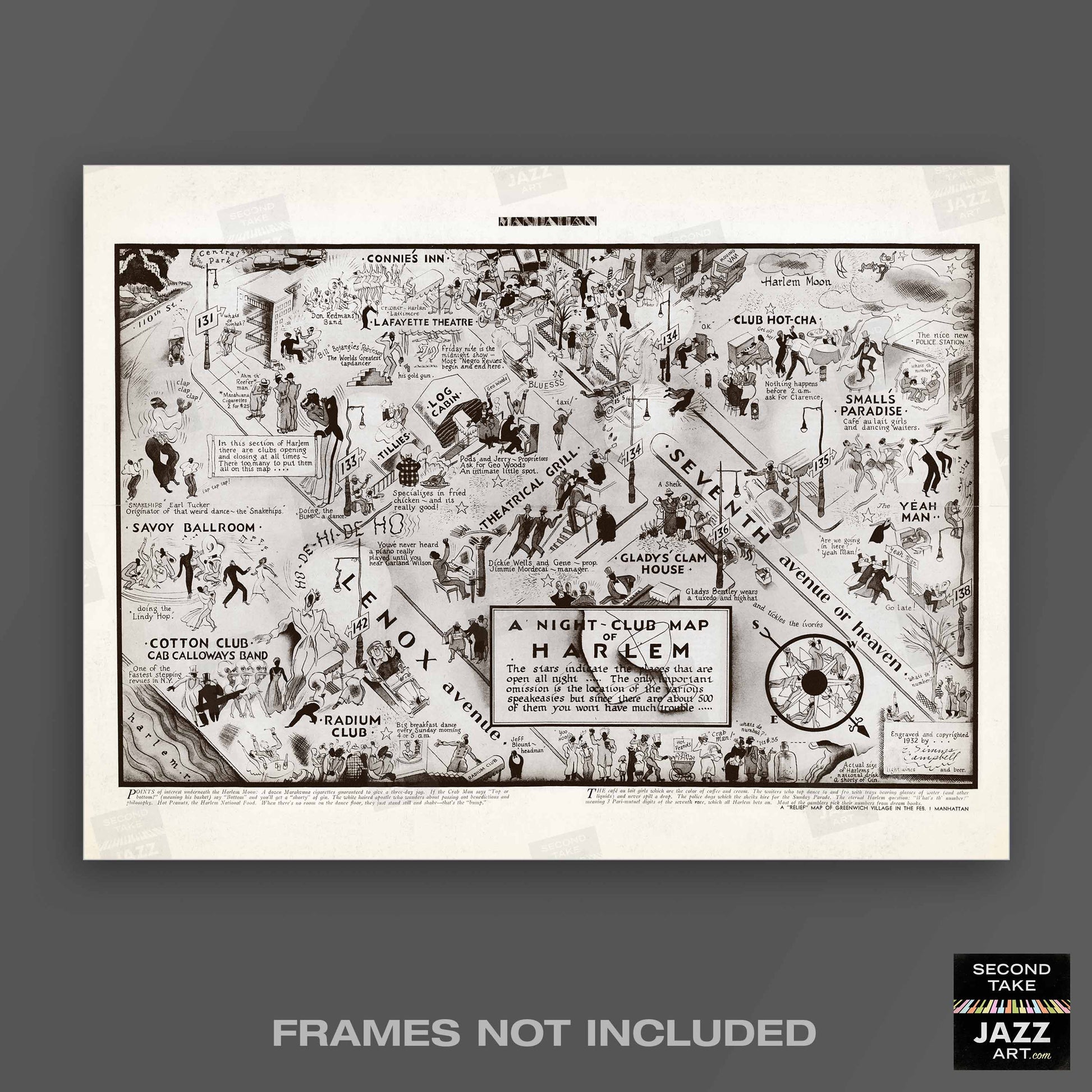 Harlem Night Club Map jazz poster - Manhattan - 1932