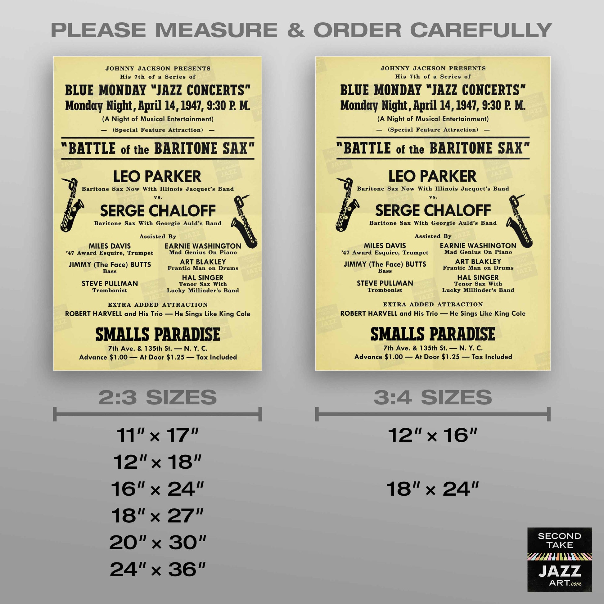 Leo Parker - Serge Chaloff jazz poster - Battle of the Baritone Sax - Smalls Paradise - 1947