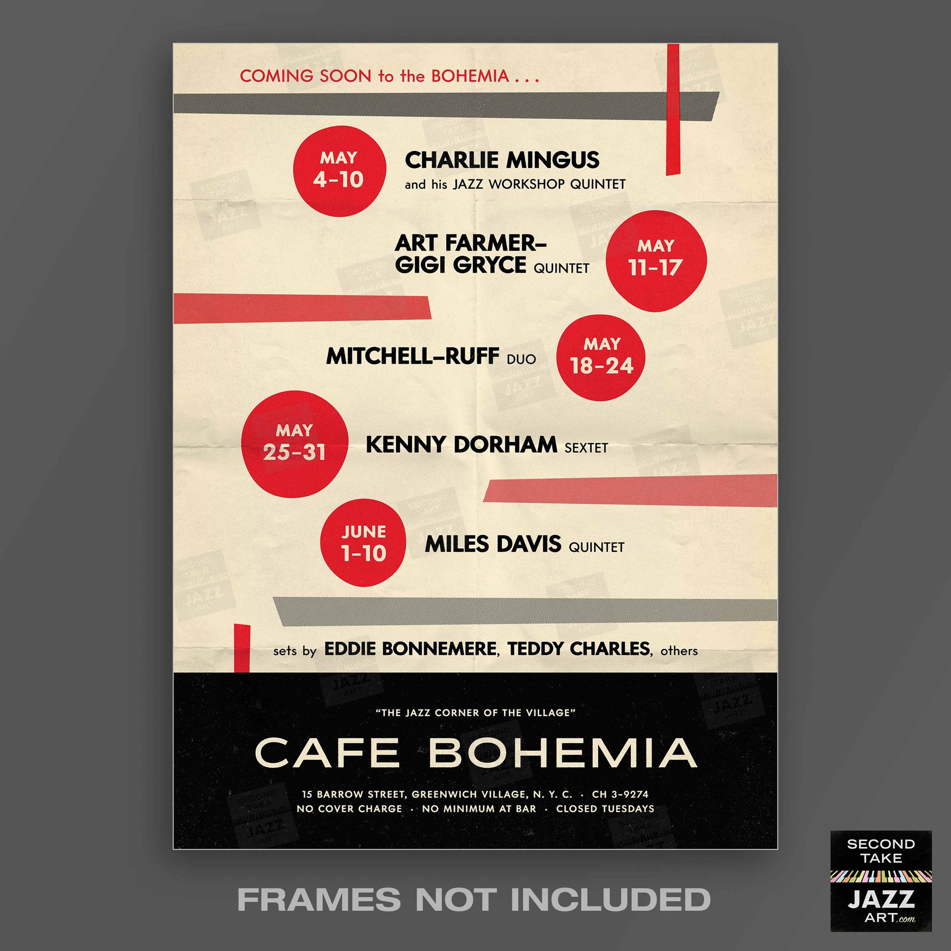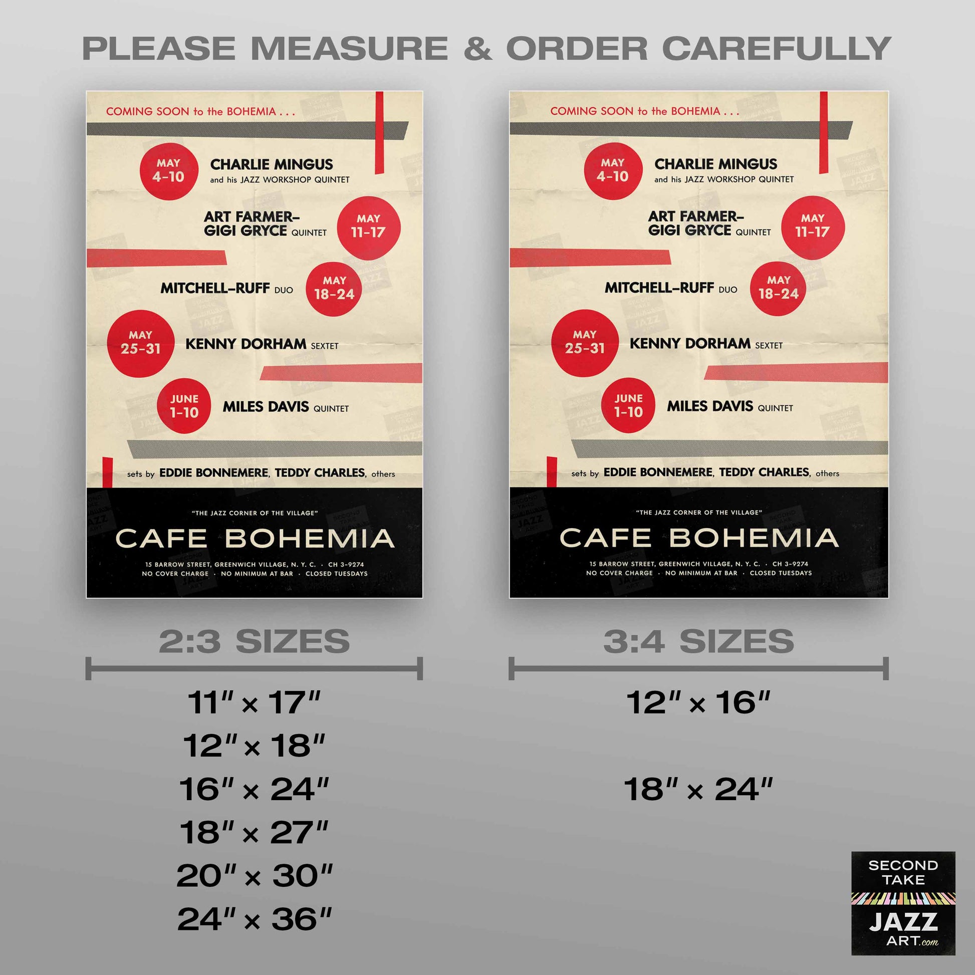 Miles Davis - John Coltrane - Kenny Dorham jazz poster - At the Cafe Bohemia - 1956