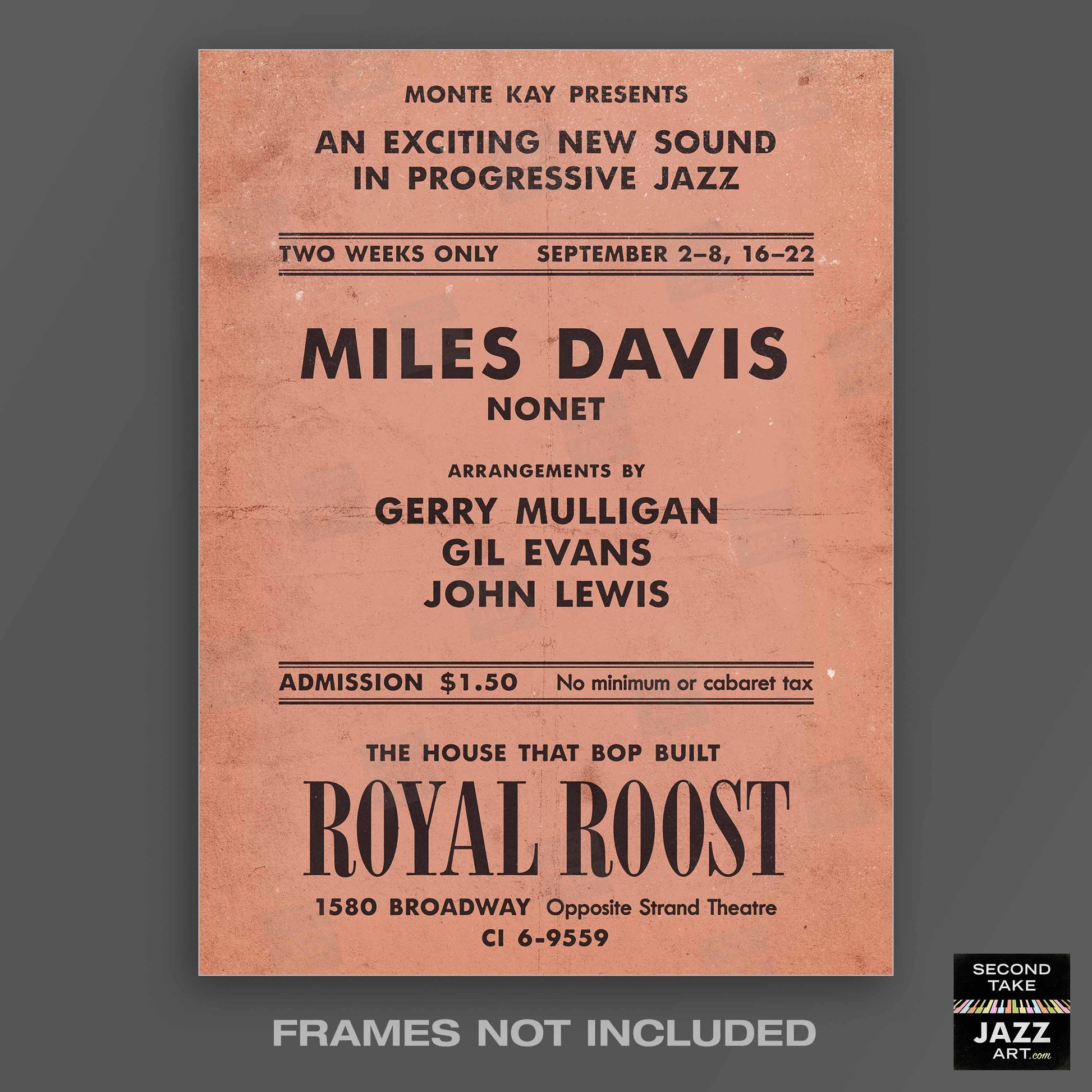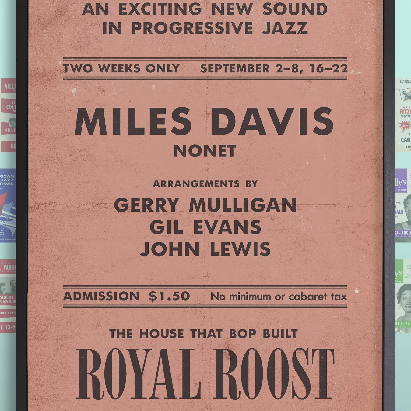 Miles Davis - Gerry Mulligan - Gil Evans jazz poster - Birth of the Cool - Royal Roost - 1948