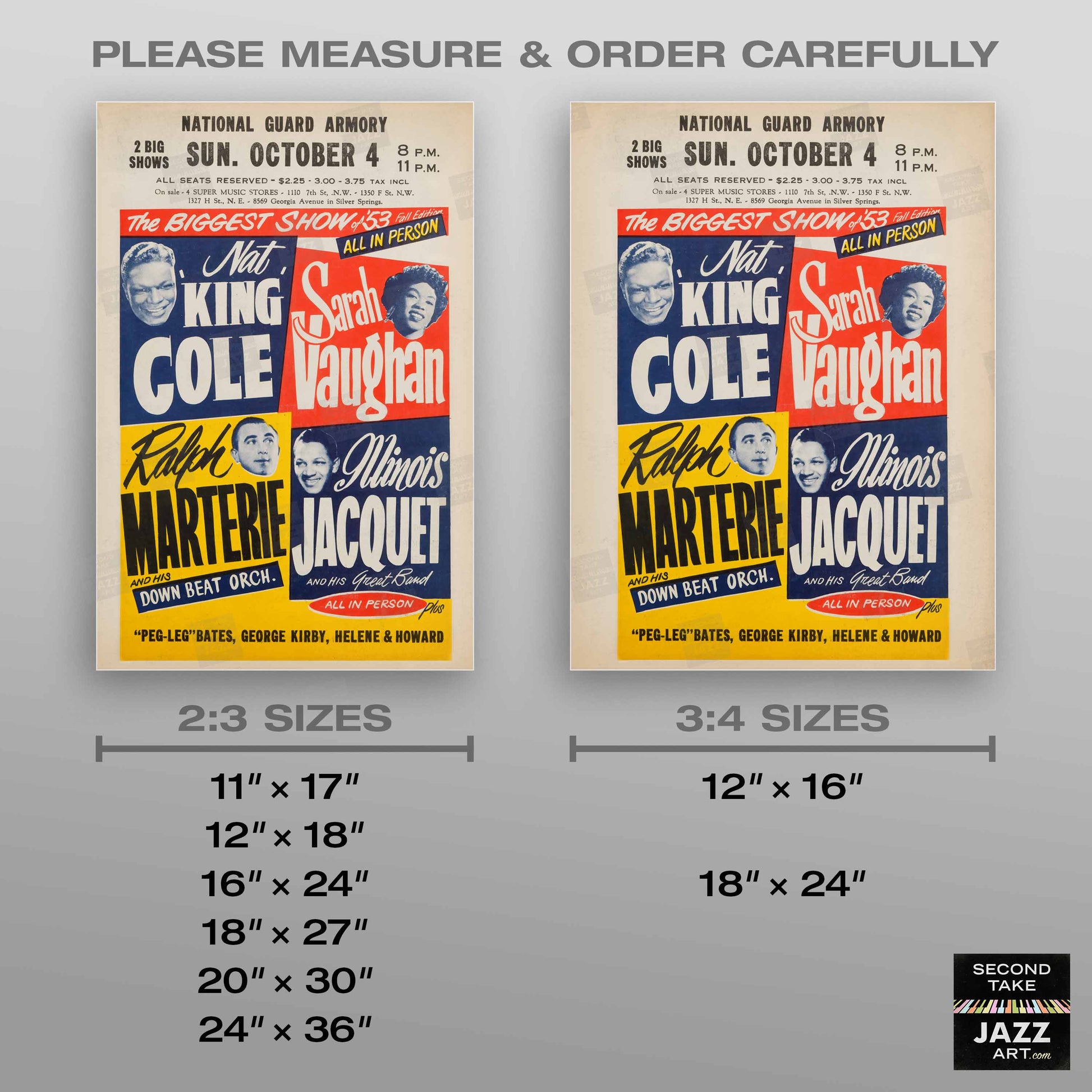 a high-quality unframed poster featuring original upgraded artwork commemorating a 1953 touring show of jazz/pop legends: