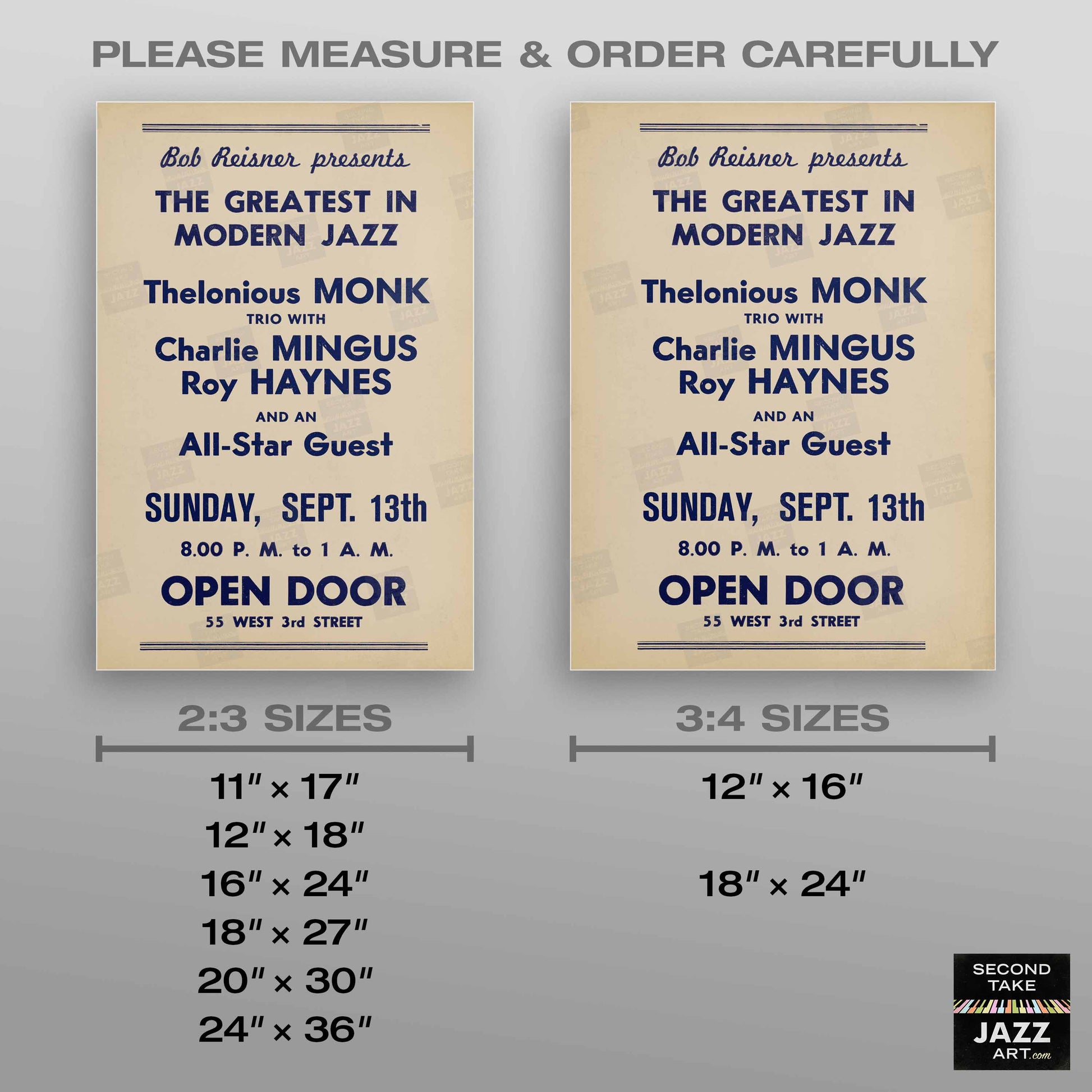 Thelonious Monk - Charlie Parker - Charles Mingus jazz poster - Open Door - 1953
