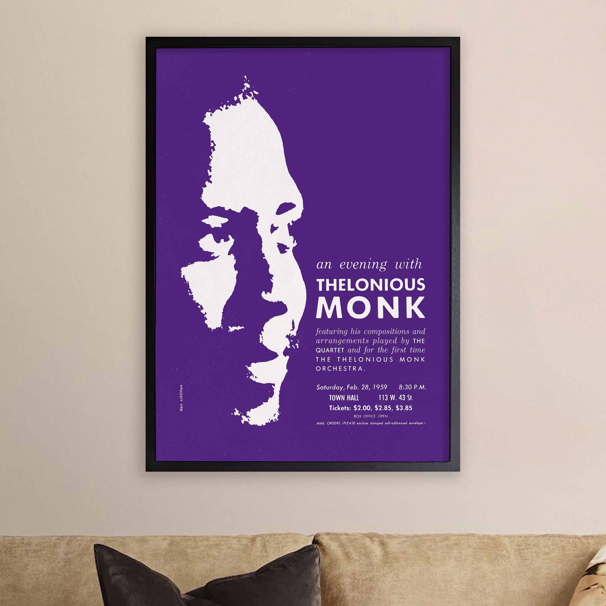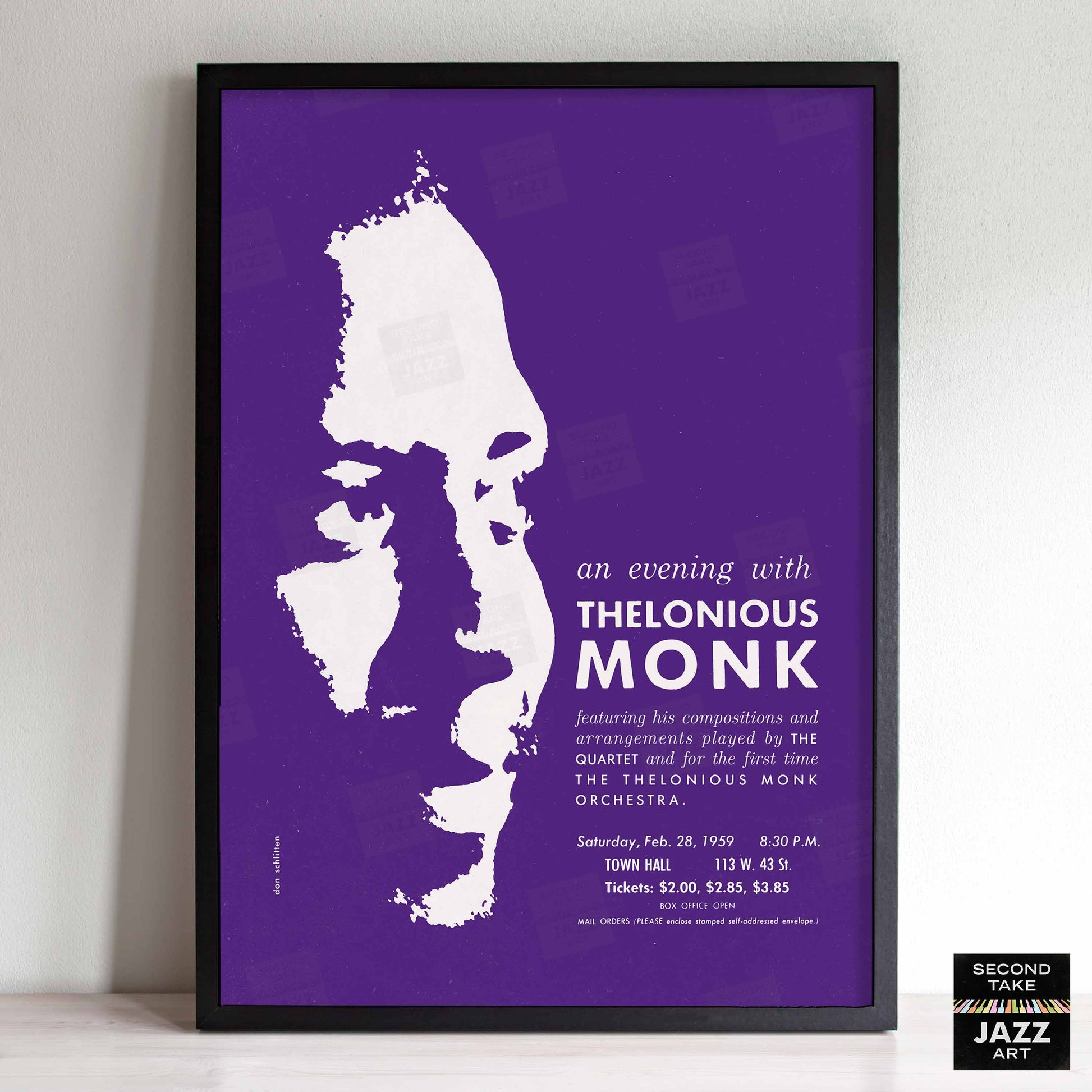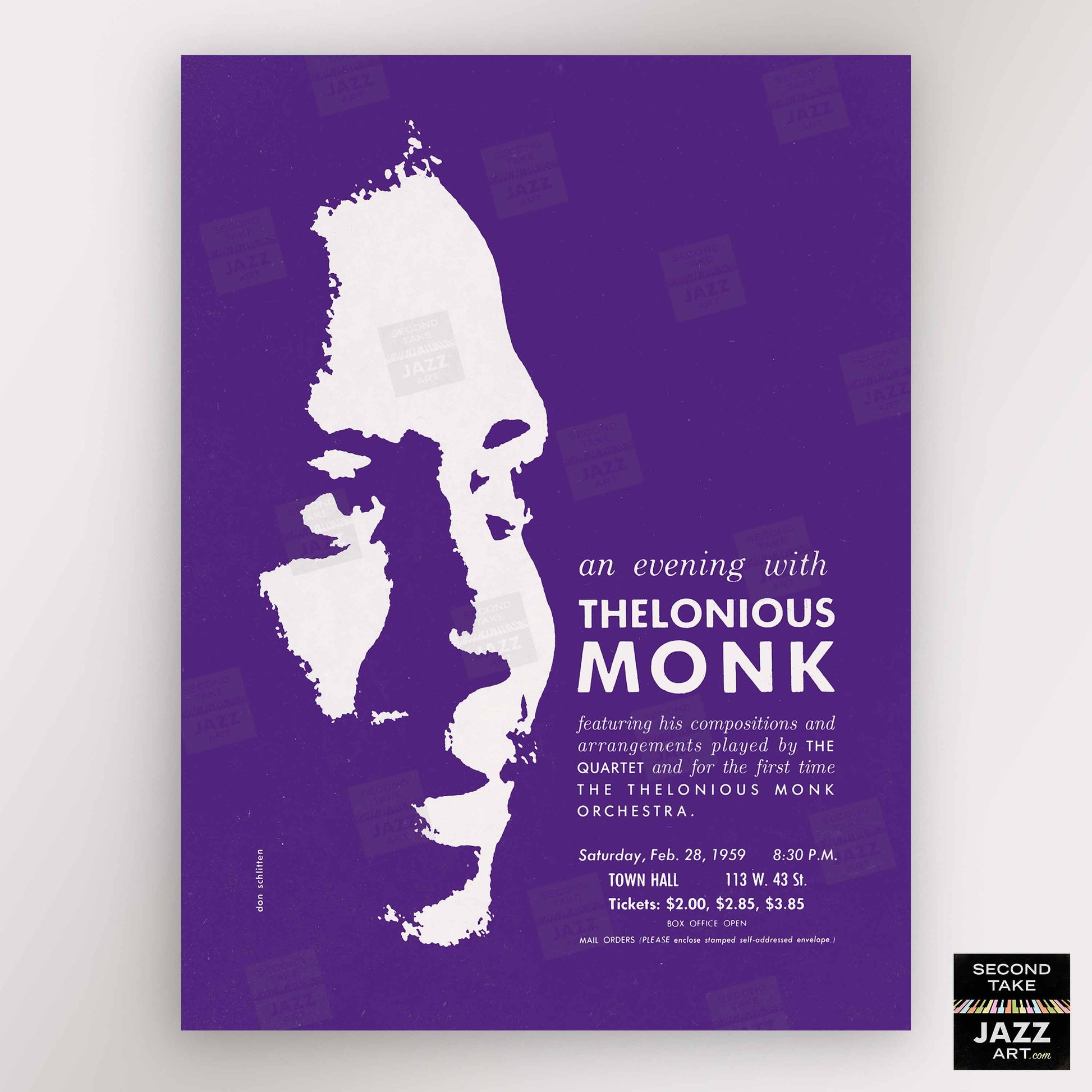 Thelonious Monk jazz poster - Orchestra and Quartet - Town Hall - 1959 (purple variant)